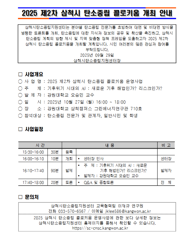 ‒ | 2025 제2차 삼척시 탄소중립 콜로키움 개최 안내 |
